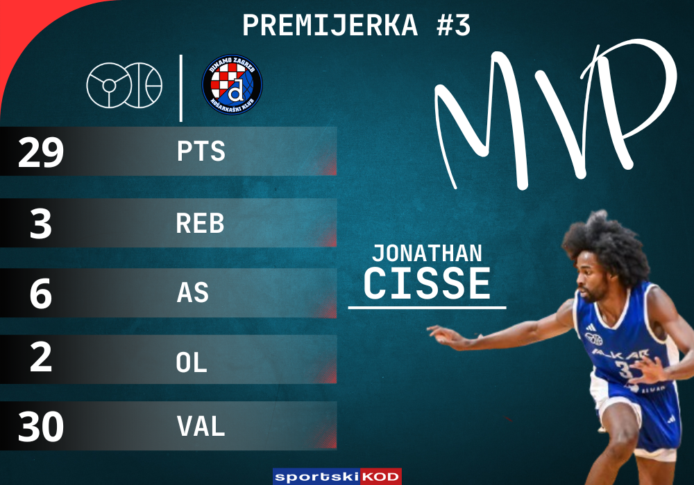 Jonathan Cisse (Alkar-Dinamo)-29 poena (6/14 šut), 3 sk, 6 as, 2 ol-val 30