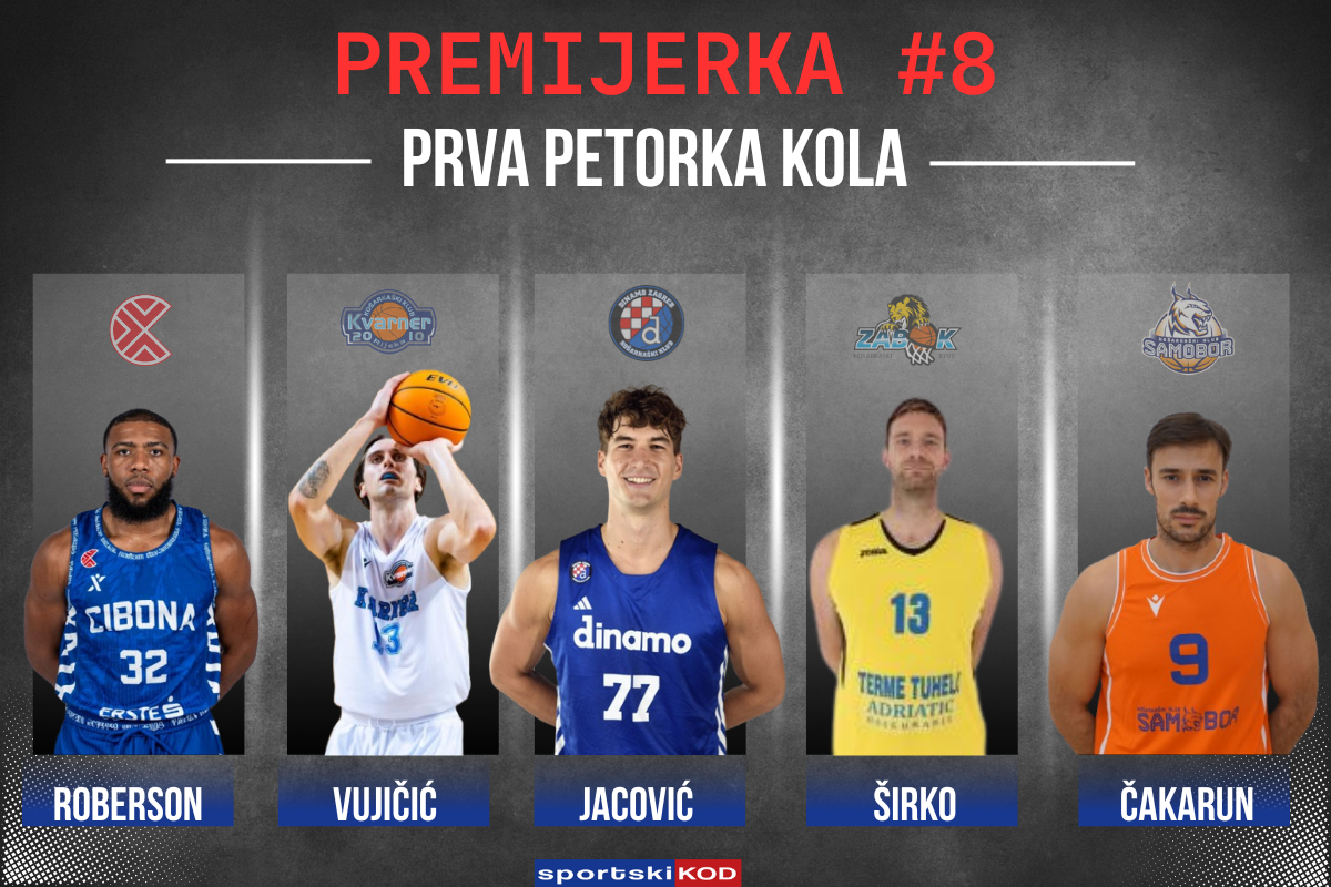 1.Justin Roberson (Alkar-Cibona)-8 poena (4/9 šut), 7 sk, 10 as, 3 ol-val 21