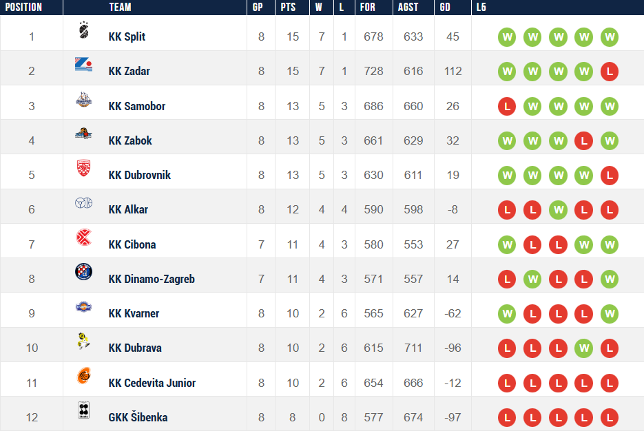 Derbi kola je igran u Dubrovniku, koji je od strane Zaboka zaustavljen u svpm pobjedničkom naletu pa su se sada ove dvije momčadi izjednačile na tablici sa omjerom 5/3 nakon osam odigranih utakmica. Dinamo je u ZG-derbiju bio bolji od Dubrave, koja se nikako ne može odlijepiti od dna tablice, dok je momčad Damira Mulaomerovića učvrstila 8.mjesto, svojom četvrtom pobjedom.