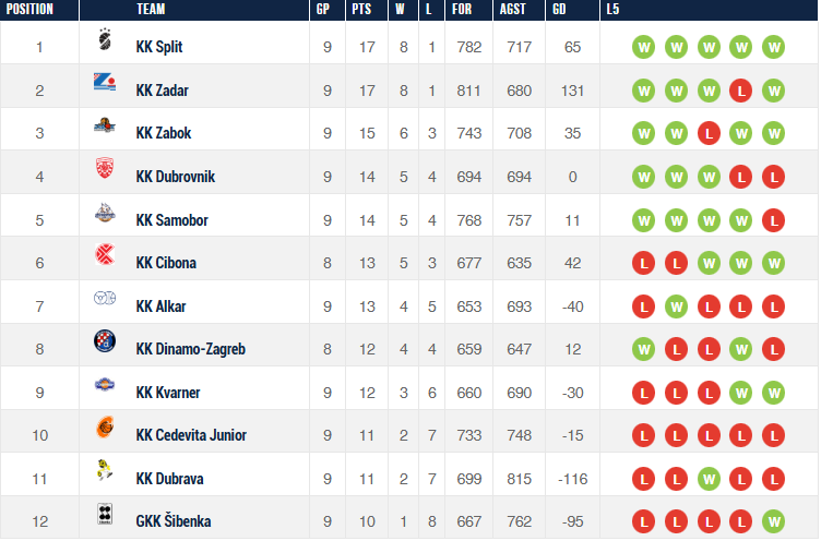 Šibenka je dočekala prvu pobjedu u sezoni. Dolaskom iskusnog Darka Planinića mladi trener Franko Kalpić je dobio sigurnost pod koševima, upravo ono što je ovoj momčadi nedostajalo, ali i veliko iskustvo na terenu. Šibenčani su minimalno slavili protiv Dinama i barem na kratko popravili krvnu sliku. Samobor je dugo mučio Cibonu i ništa nije upućivalo na njihovu lošu posljednju četvrtinu, no apsolutno ništa im se ne može zamjeriti, teško je protiv Cibone igrati svih četrdeset minuta na visokom nivou. Vukovi su posljednju četvrtinu dobili 31:12, dovoljno za preokret i novu pobjedu.