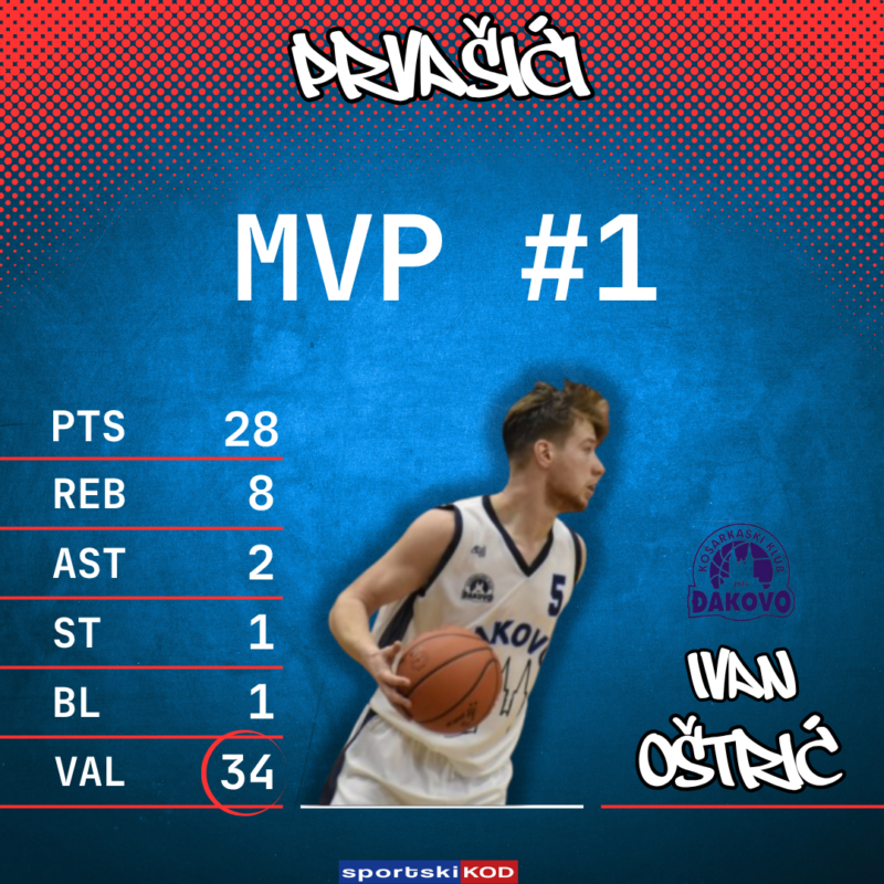 2.Ivan Oštrić (Đakovo-Marsonia)-28 poena (9/13 šut), 8 sk, 2 as, 1 ol, 1 bl-val 34