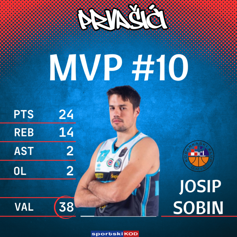 Josip Sobin (Gorica-Omiš)-24 poena (9/13 šut), 14 sk, 2 as, 2 ol-val 38