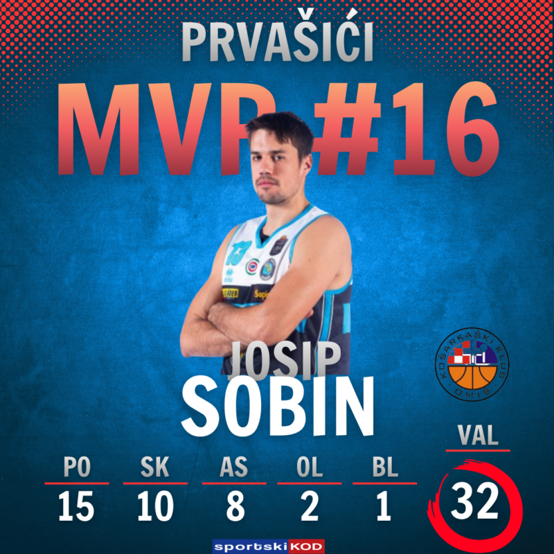 Josip Sobin (Omiš-Đakovo)-15 poena (7/8 šut), 10 sk, 8 as, 2 ol, 1 bl-val 32