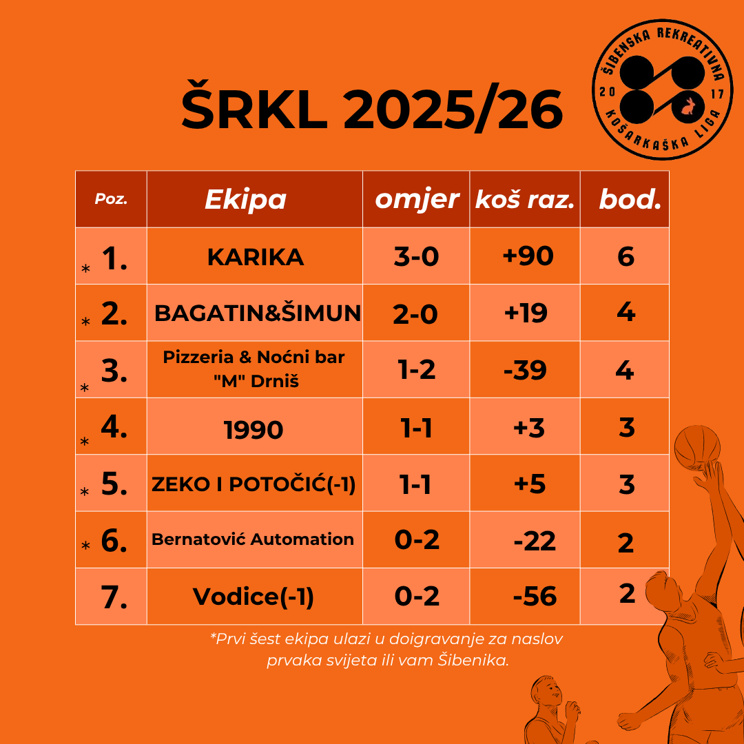 Drnišanima je dvoboj s Karikašima došao u najnezgodnijem mogućem trenutku. Suspenzije su zbog akumuliranih tehničkih pogrešaka odnosno isključenja odrađivali njihovi najbolji igrači, Marin Barišić i kapetan Roko Pavelić. Pouzdanog Ivana Galića je pod košem dostojno zamijenio Ante Jerković, a izostanak udarnog dvojca je – koliko je mogao – nadomjestio Roko Močić. Upravo na krilima njegovih nevjerojatnih trica Drnišani su nakon prvih deset minuta bili u plusu (22:24). No, tada Karikaši ubacuju u onu-njihovu-svi-znate-koju brzinu i stvaraju značajnu prednost koju su povećavali do kraja utakmice. Iako je pitanje pobjednika bilo riješeno puno ranije, dobrim dijelom zbog uigravanja za drugo izdanje turnira pobjednika rekreativnih i amaterskih liga (koji će se održati ovog vikenda u Zadru) momci u plavim dresovima nisu skidali nogu s gasa te je konačnih +32 u njihovu korist potpuno zasluženo. Još jednom su se svi igrači Karike upisali u strijelce, a balansirani napad predvodili su Skakutajući Blatar Ivan Cukrov (20 poena, 10 skokova), Mateo Grgurica (17 poena) i Krste Malenica (16 poena, trice 4/8). Kod Drnišana je prvo ime bez dileme bio Močić (24 poena, 5 skokova, trice 6/15), a dvoznamenkasti su bili još Ante Dželalija (12 poena, trice 4/10) te gorespomenuti centar Jerković (11 poena, 12 skokova).